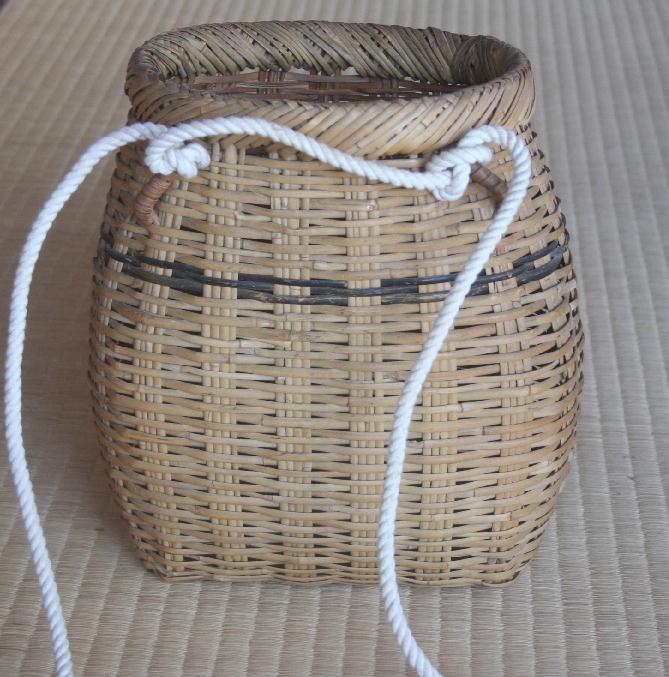 縁の皮をそのまま中に折り込んでいるので、中はちょっとしわしわと、余り気味です。石を入れたり、貝を入れたり、ずいぶん長い間使っています。