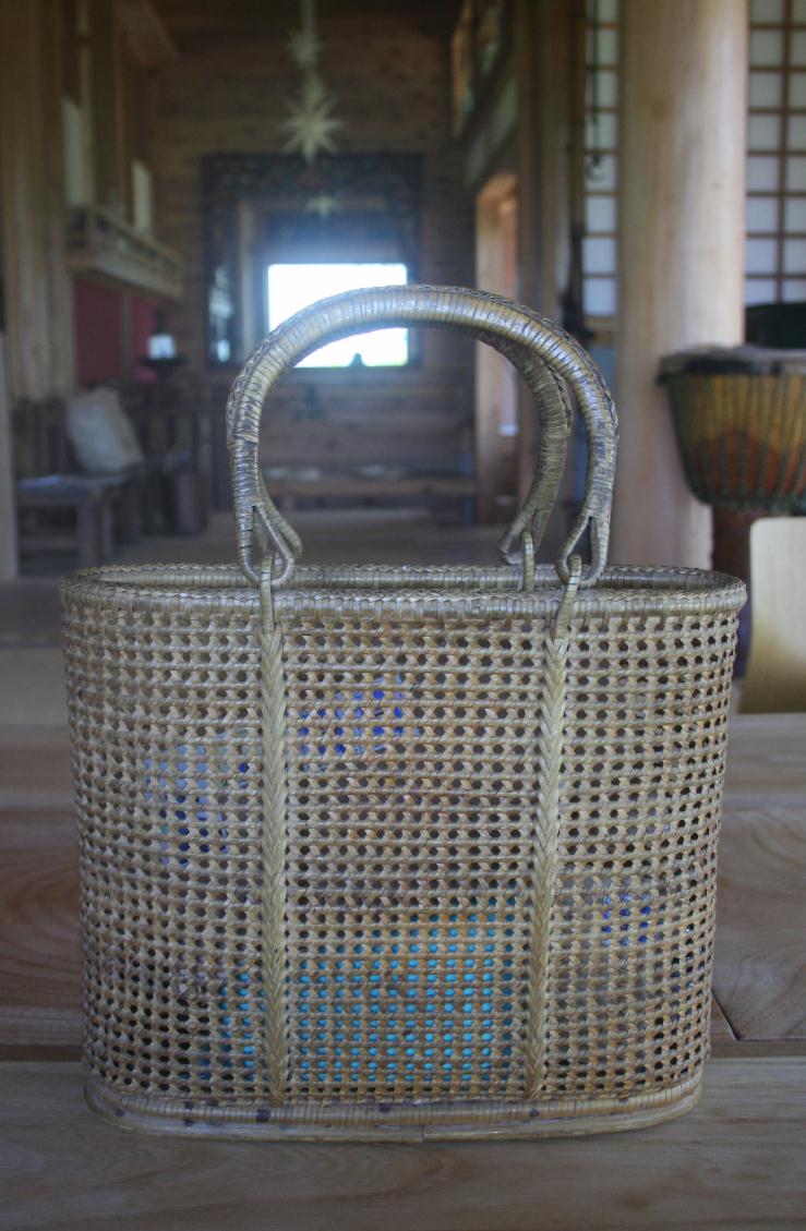 小さくて、ちょっとそこまで出かけるとき持って行くのに便利な籠バッグは、バンコクに住んでいたとき、年2回あった、刑務所の受刑者の作品即売会で手に入れたものです。