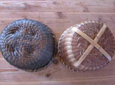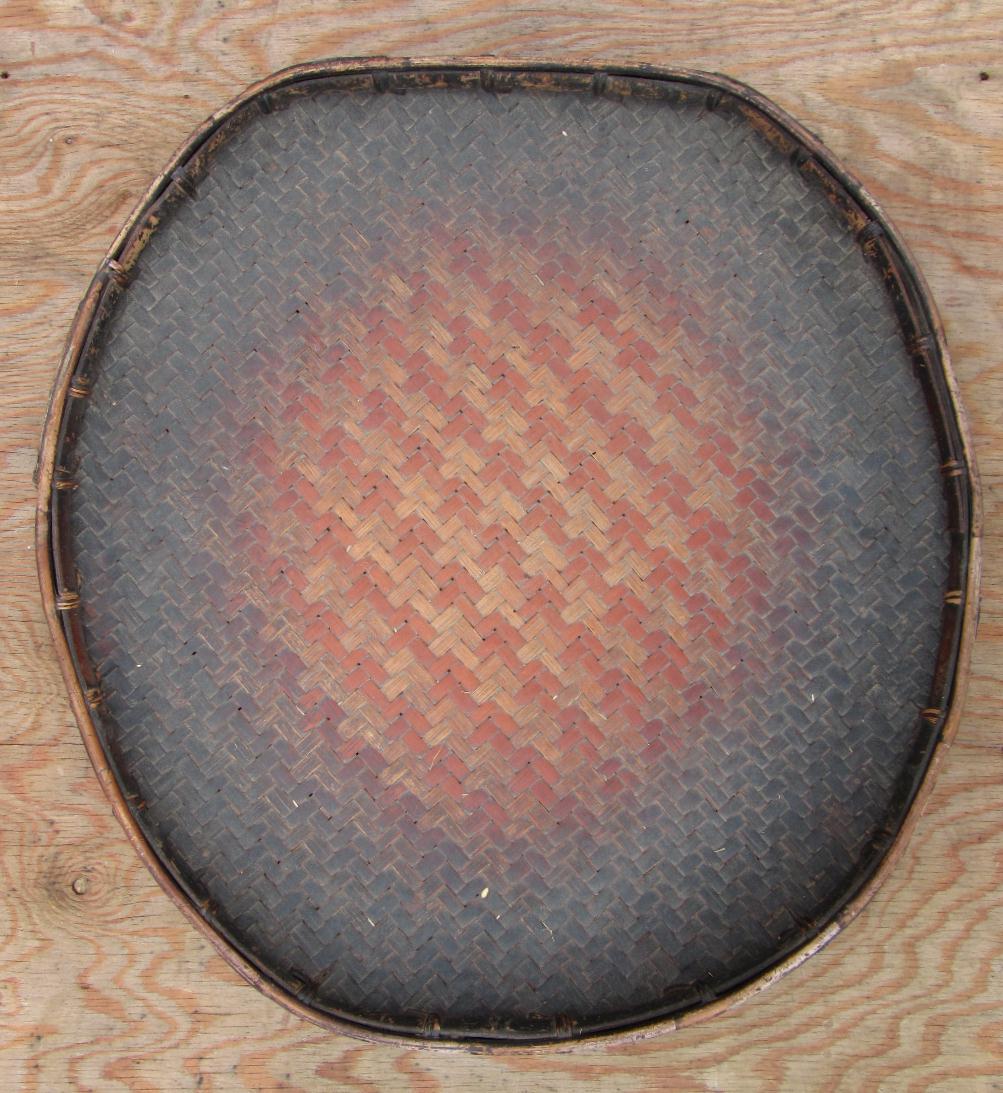 こちらは、近所の骨董市で見つけた、日本の手箕です。木の皮と鈴竹でつくってあるのでしょうか?