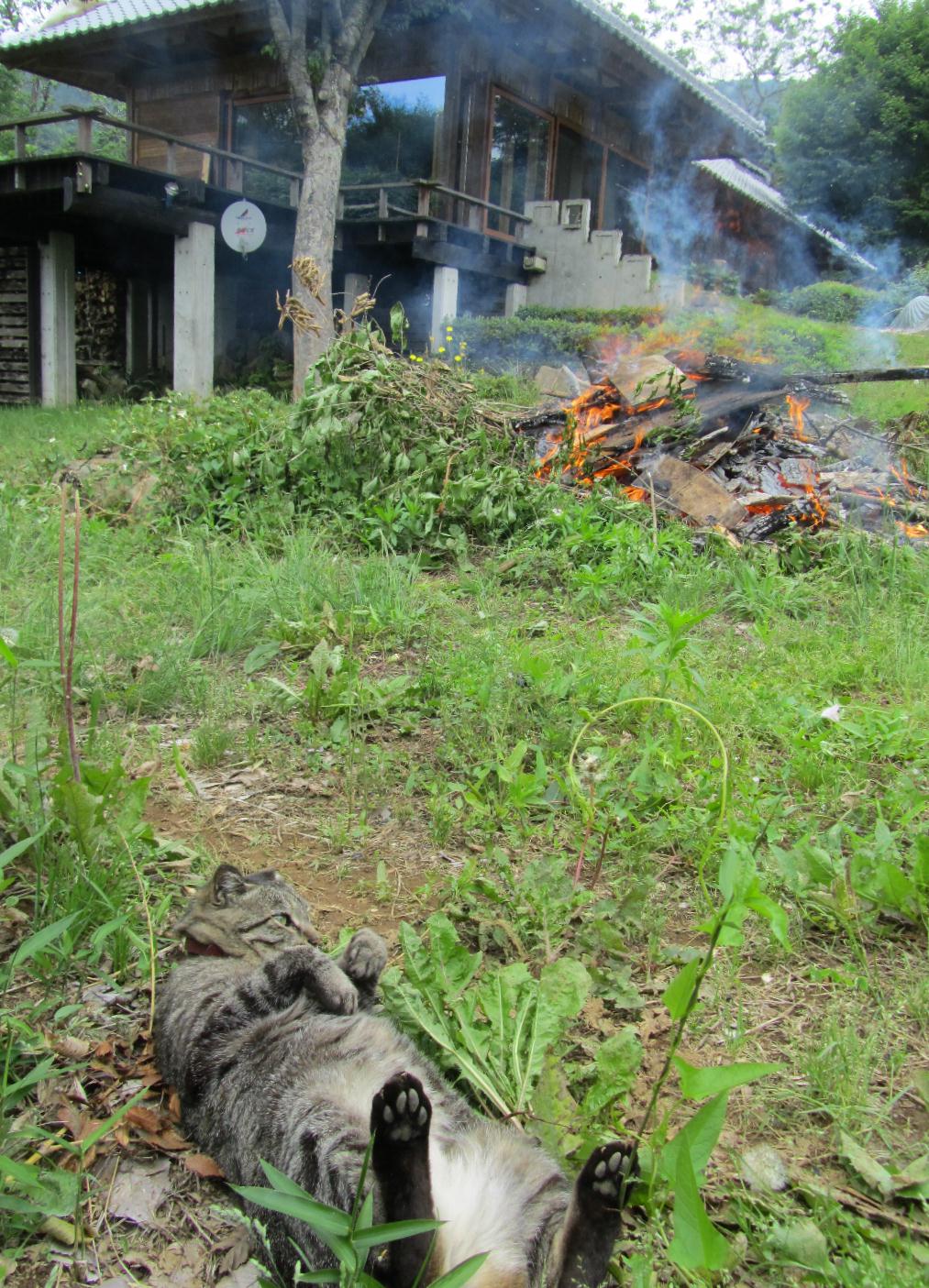 しかし、早々と梅雨に入って、全体的に湿っているうえに台風が来て、珍しく風の吹く日が続き、なかなか燃やす機会がありませんでした。