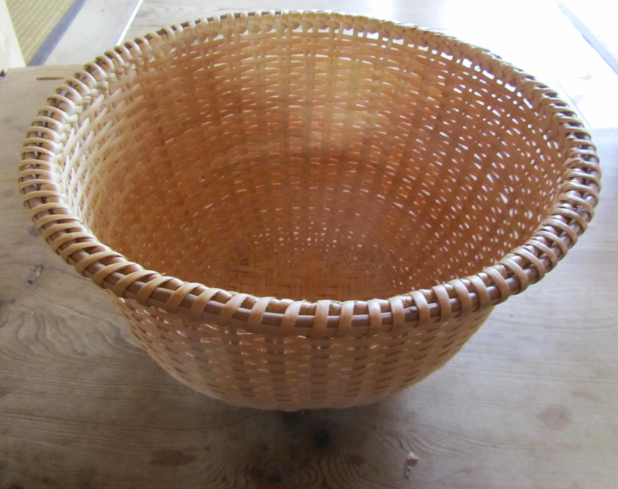 籠づくりは冬の作業とか、そのときは季節外れだったため、町のどこにも籠がありません。やっと、つくっている方の自宅を訪ねあて、「新品ではない、使っているものだ」という自家用の笊を、無理やりのようにして譲っていただいてきました。