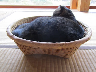 写真を撮ろうとしたときに入ってしまった猫がじゃましていますが、東京の篠崎笊は、やはり真竹製で、縁も丁寧に巻いてあります。