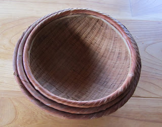 我が家で、日常的に米揚げ籠として使うのは、一番小さい鈴竹の籠だけです。一度にお米をとぐのは三合、多いときでも、五合以上とぐことは、めったにないからです。