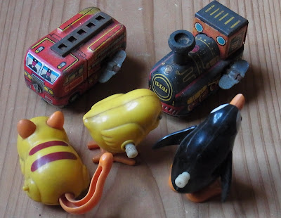 後ろは、1960年代の、輸出用のぜんまいのおもちゃです。
