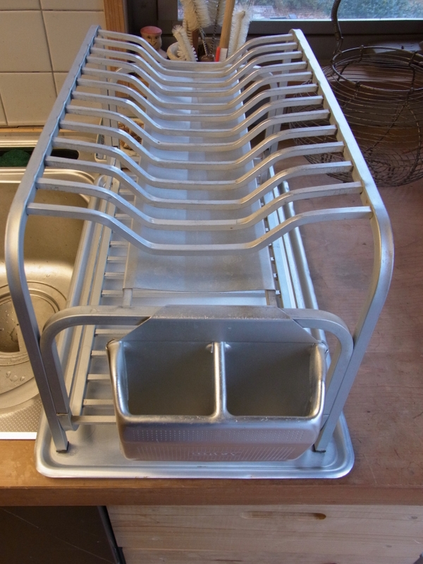 ラバーメイドのよくできた水切り籠に問題があるとすれば、たくさんの食器を入れることができるので、そのまま放置しがちになり、ついつい水切り籠そのものを洗うのが、間遠になるということでした。