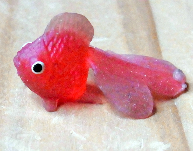柔らかくて、ゼリーのようなつまむと弾力のある材料でできた金魚です。