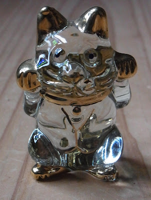 かつての仕事場の近くの、クリスタルガラス屋さんで見つけた、格調高い(?)ガラスの招き猫です。いったいどこでつくられたものでしょうか?