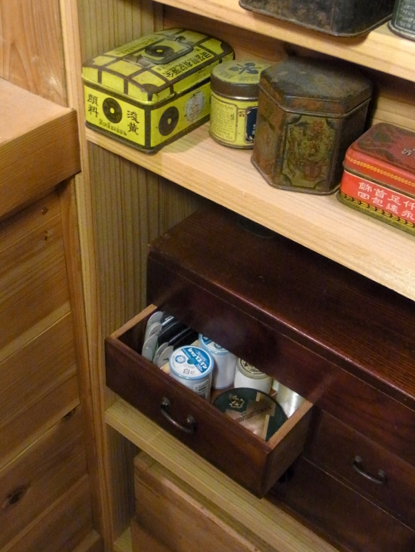 以前住んでいた家の棚の上の天井近く、真ん中に置いてあるバター攪拌機は、1950年代のイギリスのものです。