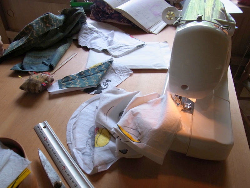 長い間他人の世話にばかりなり、何もできなかったので、久しぶりに人の役に立つことができると、すっかり気持ちも高揚して、裁縫道具から、古いつくり方ノート、ウエストに入れるゴム紐まで持参して、一昨日やってきました。