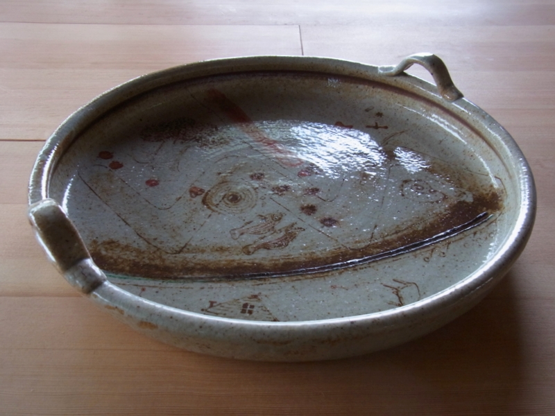 直径37センチもありますが、取っ手がついているので、使いやすいお皿です。