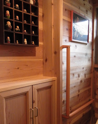 お手洗いの壁は、見たところ木の壁ですが、コンクリート壁に断熱材を入れて、その上に板を張ったものです。