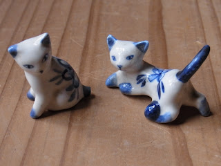 白地に藍模様の猫も、鞠を持っているのなどもいましたが、二匹だけになってしまいました。