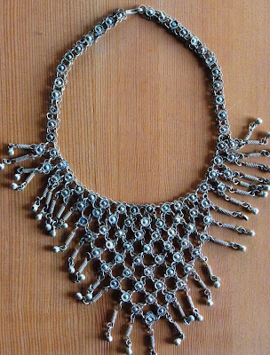他には、首周りに合わせて形づくった太い銀の針金、あるいは革紐などもありますが、私の好きだったのは、東南アジアの山岳民族たちのつくった、細い細い針金を編んだ紐でした。