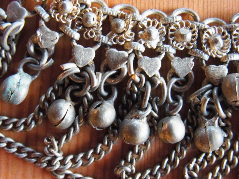 お祭りなど正装の時はとくに見ごたえがありました。モン人の少女が首にかけているのは、五連の無垢の銀。重そうです。