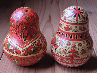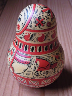 ロシアには、各地に起き上がりこぼしがあるようですが、これは北の町、アルハンゲリスクの伝統的塗りもの、メゼーニ塗りの起き上がりこぼしです。