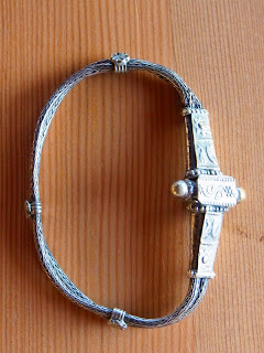 写真では違いがよくわかりませんが、左の腕輪はちゃちなお土産物です。