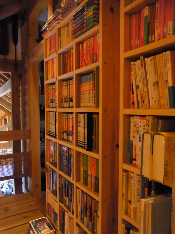 棚板の高さを両側の本棚の棚板の高さと合わせたらきれいでしたが、以前からある本棚は、上の方は文庫本で、微妙に高さを変えながら、下の方は単行本の入る大きさにつくってあるので、漫画だけ仕舞うとなると無駄が出ます。
