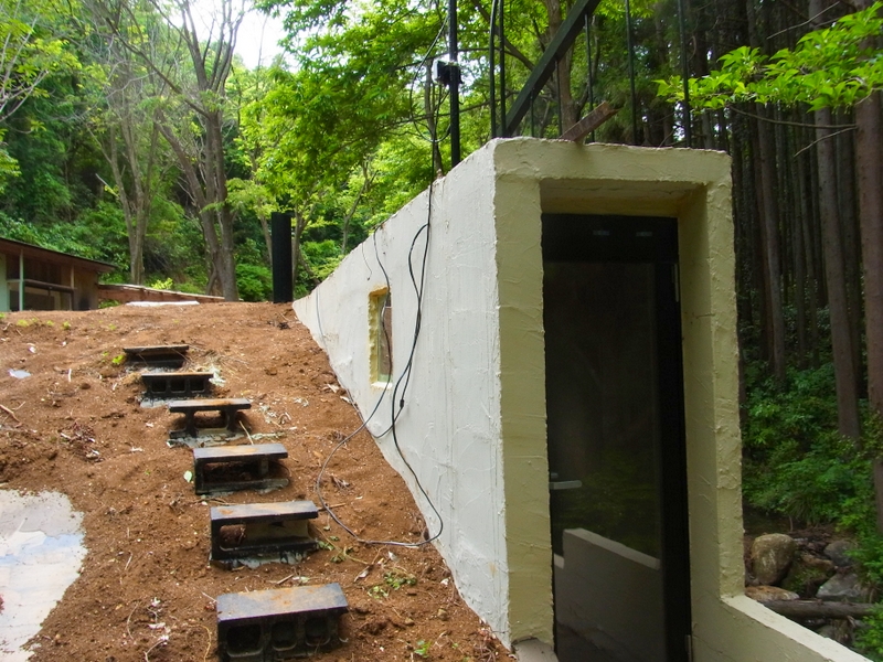 さて、そのSさんが近頃つくった、お連れ合いあつこさんの仕事場の増築部分です。入口は、洞窟に探検に入る雰囲気につくられています。