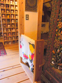 籠の後ろに糸の入ったつづら、蛇の目傘など長いもの、予備のトイレットペーパーなど置いてあります。