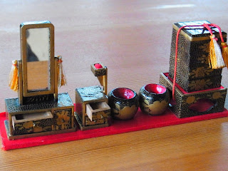 さっぱり覚えていないので開けてみたら、妹の連れ合い、やすおさんの姉上の形見分けのお雛さまの道具一式が入っていました。