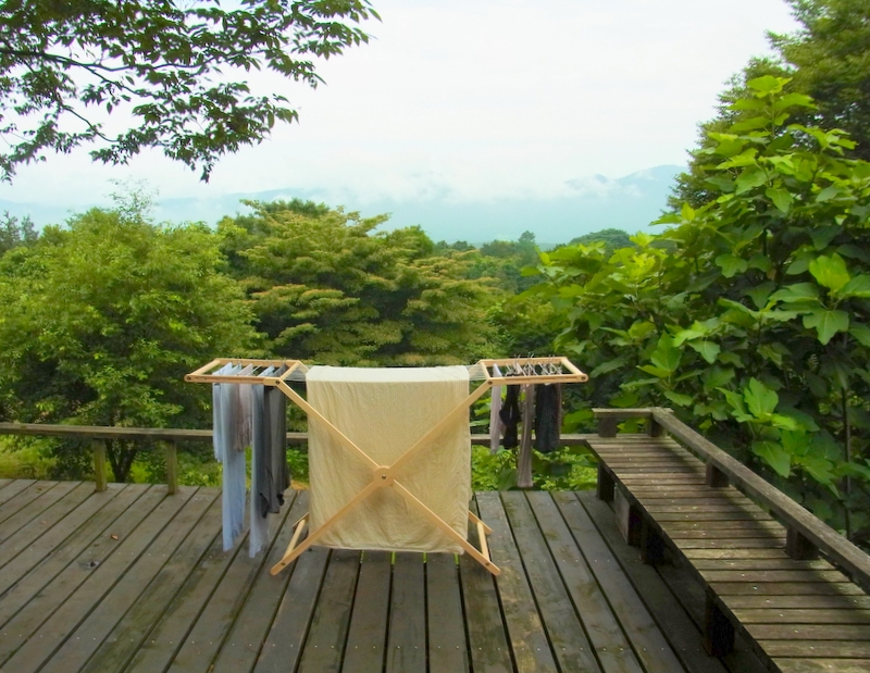 ただ、シーツ(自分でつくったもので2メートル×3メートル)は、上の写真のように畳んでやっと干せるので、シーツと布団専用の、幅が広く、高さもちょっと高く、しかも畳める物干しは、自分でつくってみようかなと思っているところです。