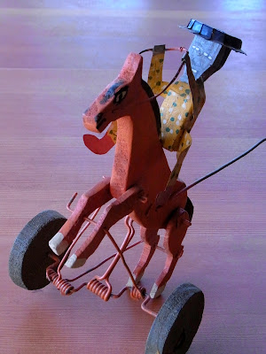 押すと、車輪が回って、馬の前足と後ろ足、カウボーイが動くのですが、決まったところで車輪が止まって、そこから強く押さないと回りません。