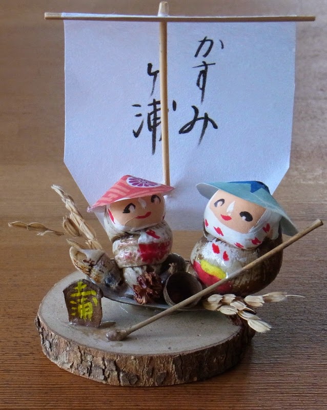 水郷の生活を描いた人形が多いそうですが、かわいいこと。貝の船には、稲穂、ヒノキの実、どんぐりのはかま、ジュズダマなど、そこいらで拾えるものが乗っていて、荷物満載で霞ケ浦を行き来した姿がよく表されています。