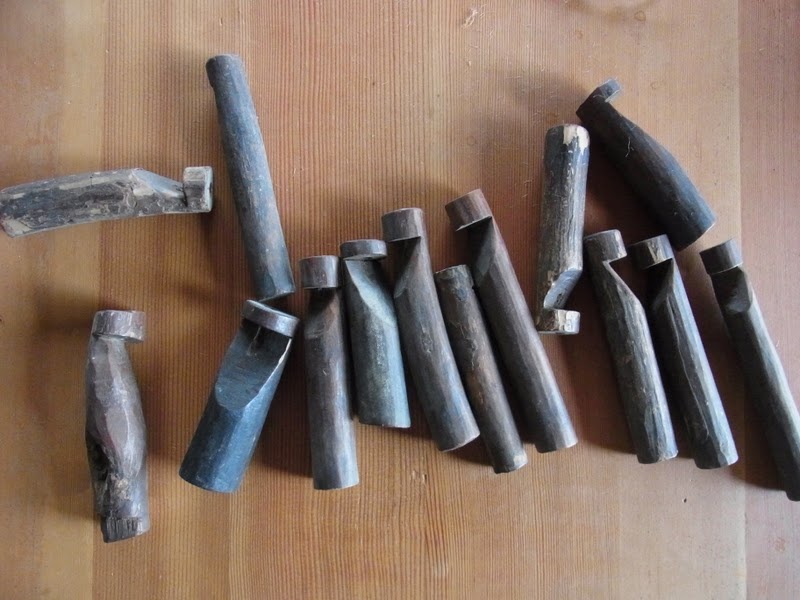 買ったのはもうずいぶん昔のことですが、どこで買ったか、すっかり忘れてしまいました。太さも長さもまちまちですから、手に入った枝を、切っては削って、夜なべ仕事につくったものでしょう。