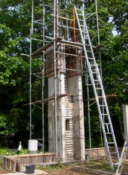 型枠外しはけっこうな力仕事なので、私はもっぱら、柱の両側に見える垂直基礎の型枠をつくる作業をしています。