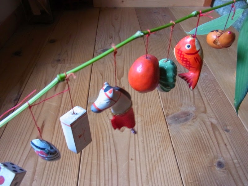 さて、H家では、鍛冶耕治さんのつくった素敵な鉄金具の「のれん掛け」を使っていましたが、私はただの間に合わせでつくります。