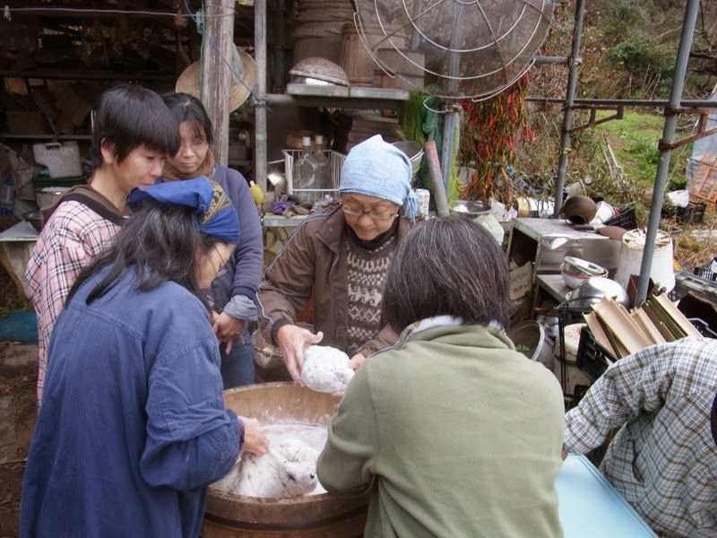 I.Tさんの家でお餅搗きをはじめた最初の年は、私たちはまだ八郷にいませんでしたが、I.Tさんの息子さんの誕生日を兼ねたお餅搗きで、搗いたものを参加者がその場で食べただけだったそうです。