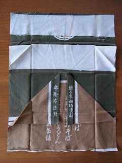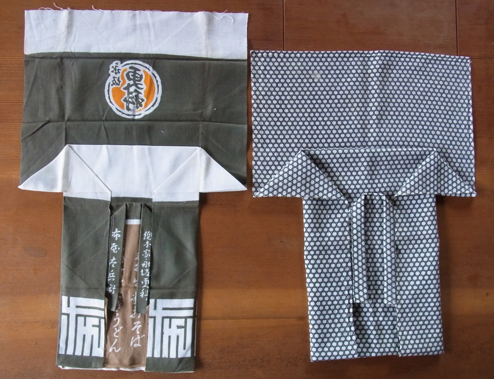 小さい半纏は、小さい手ぬぐいを使っているものだとばかり思っていたら、サイズは同じで、あらかじめ縦に折って、幅を細くしていたのです。