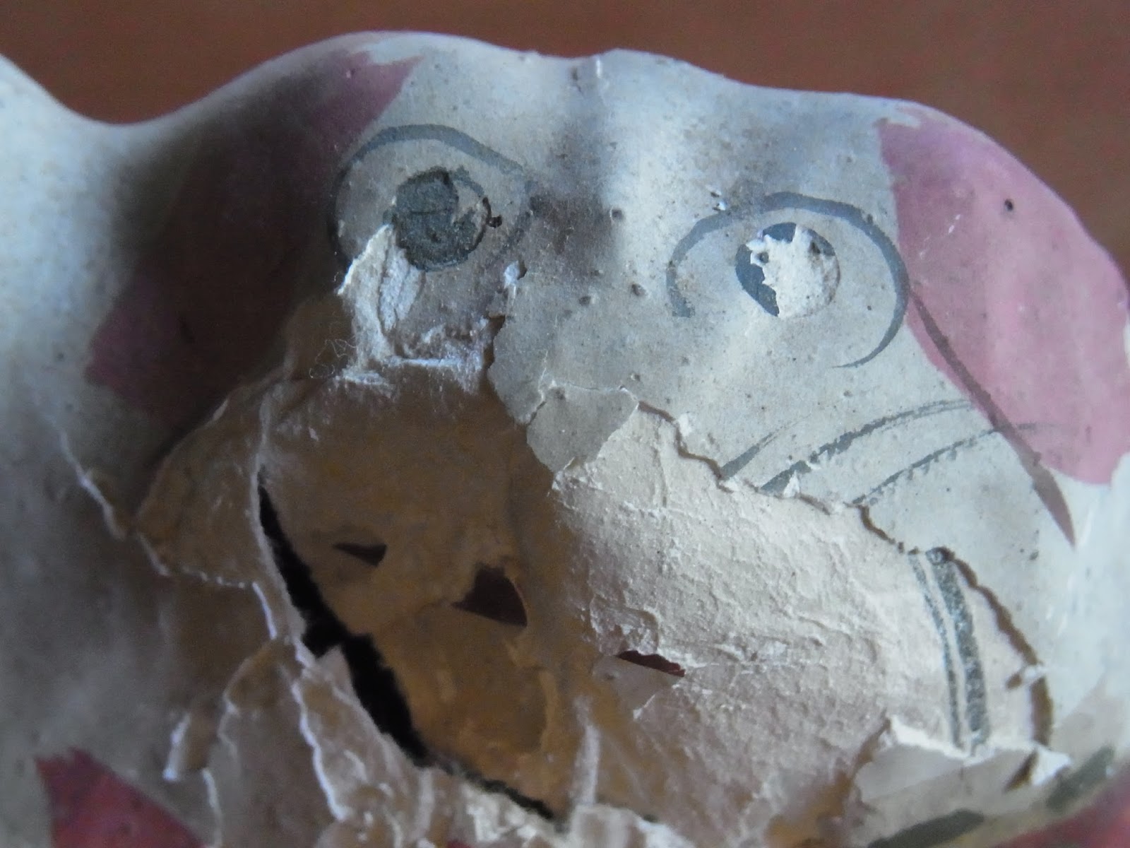 我が家にも、宮内ふささんのつくった張り子やひねり人形がありますが、残念ながら、だいたいこんなぼろぼろの状態になっています。