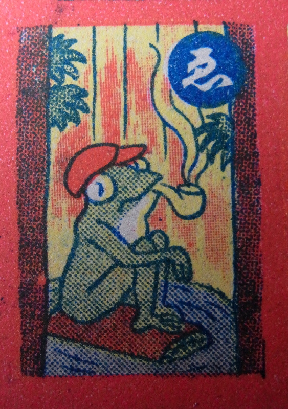 変なバッタには、まん丸でかわいいハトメがついたラベルが残っていました。字は小さくて読めませんでしたが、やはりどこかよその国のもののようです。