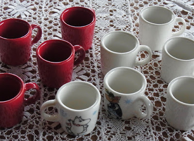 赤と白のイッタラのマグカップは定番、ムーミン柄のは、クリスマス時につくっているもののようです。