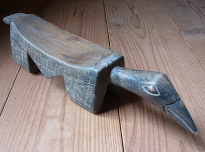 コンゴのバクバ人(あるいはブションゴ人)のつくる、架空の動物で、この上で占いをするそうです。