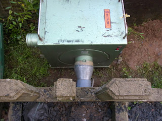 掘った所に塩ビ管を埋めてつなぎ、三ヵ所で立ち上げました。