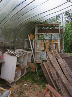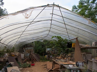 それにしても、仮設木工室は、植物が侵入する、おがくずや鉋屑がたまる、ものもたまる、ときおり雨も降り込むで、本当に限界が来ていました。
