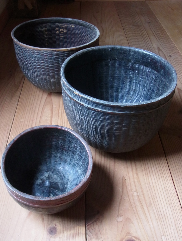 水入れの竹籠は、底の中心を尖らせて編むと決まっているところが、面白いと思います。