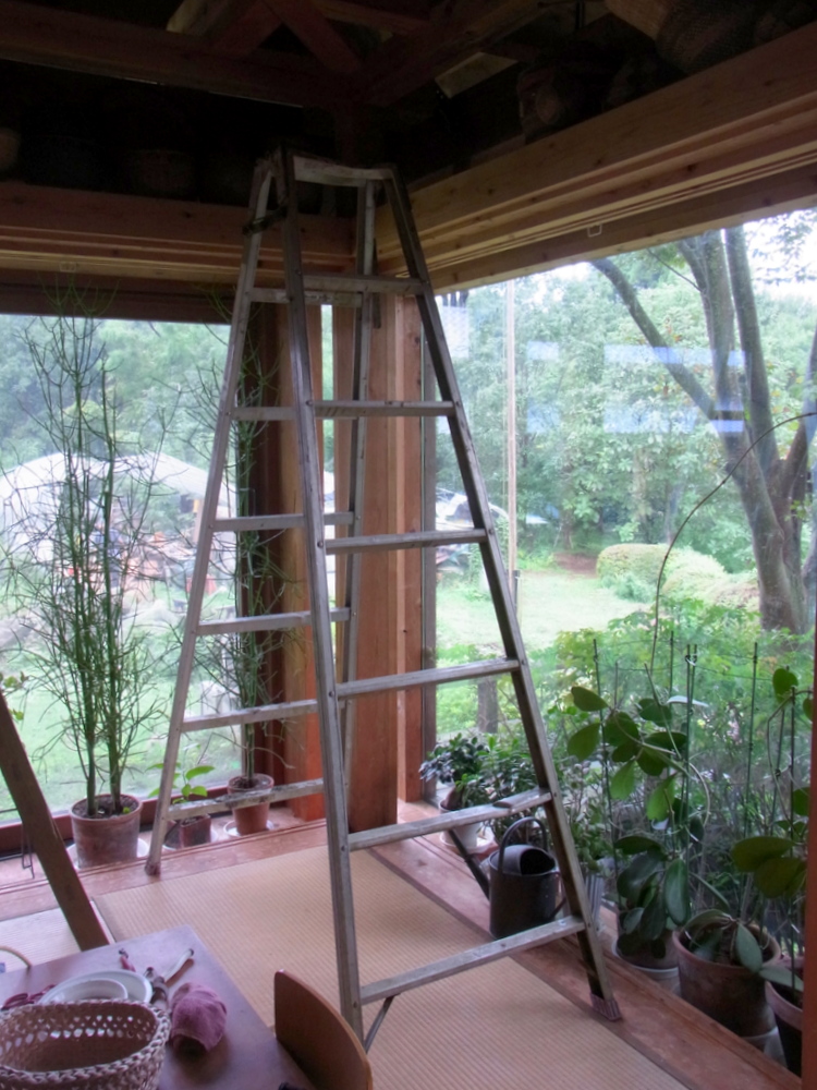 というわけで、ちょっと登って、高いところのものを取ったりするには差し支えありませんが、立って作業するのは、樫の木の梯子は無理だとわかりました。