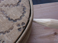 胴の曲げ木の始末は、綴ってもありますが、端がしっかり接着剤でくっついてもいます。