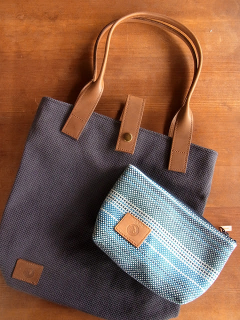 これは、「松右衛門帆」という布を復元した布でできたバッグとポーチです。