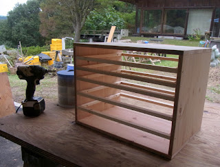 引き出しは、まず枠をつくり、底に合板をビス止めしました。