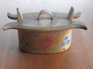 掌ではなくて指の上に乗るサイズの、スウェーデンの曲木の箱、おちびさんです。