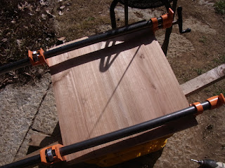 手前が開いているので、手前だけ適当な材を渡して縮めれば簡単かとも思いましたが、全体を矯正した方がいいと思い直し、幅広の板をつくりました。