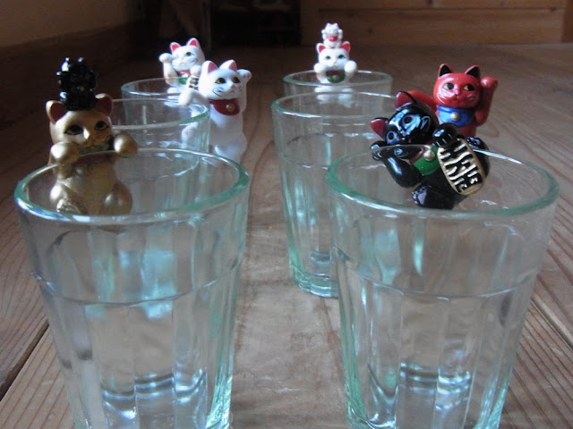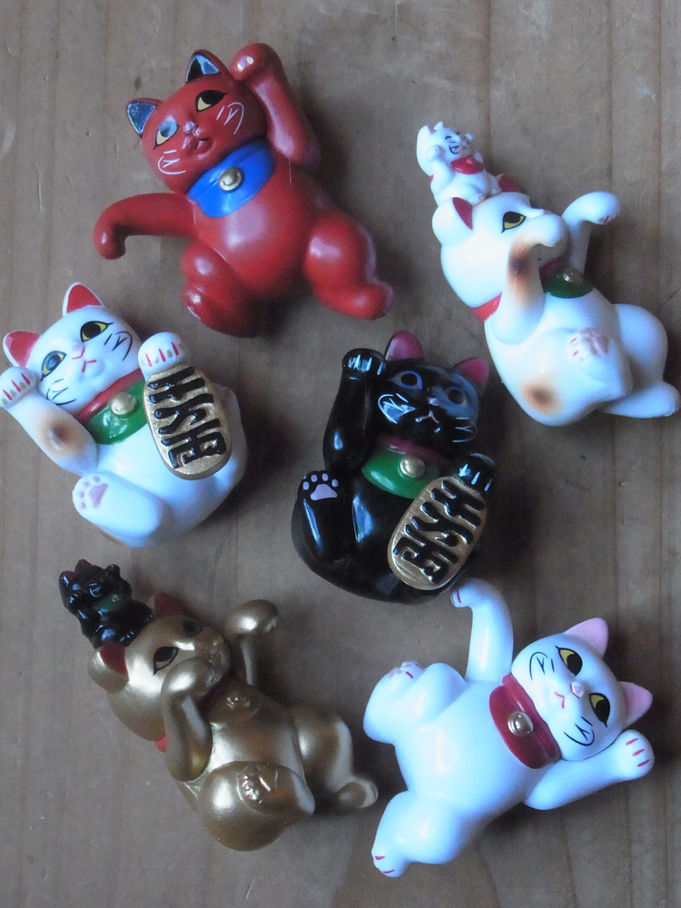 ただの招き猫を買ったつもりが、コップの縁に引っ掛ける招き猫たちでした。