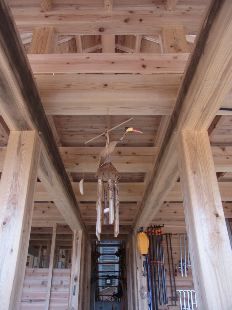 さっそく、作業棟の下屋の軒下に吊るしてみました。