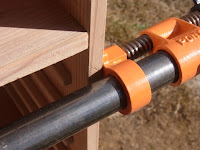 それをクランプで抑えて、ねじ釘を使って、縮めます。