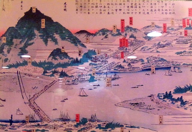 真ん中あたりに十八楼があり、その奥に河原町が、長良川の支流(運河?)に沿って並んでいます。
