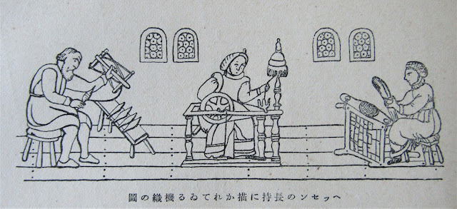 この本ができたよりさらに昔には、この織り機で織った紐は、ヨーロッパでは服を着るときの必需品だったのかもしれません。
